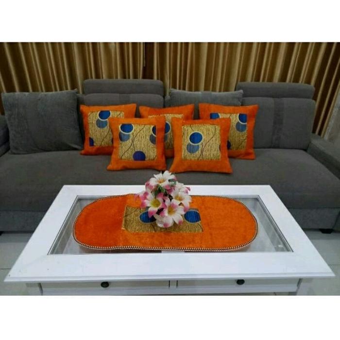 SATU SET SARUNG BANTAL SOFA DAN TAPLAK MEJA/SARUNG BANTAL 1SET(5 SARBAN+1TAPLAK MEJA TAMU)SATU SET SARBAN DAN TAPLAK MEJA TERLARIS - MERAH, 40×40