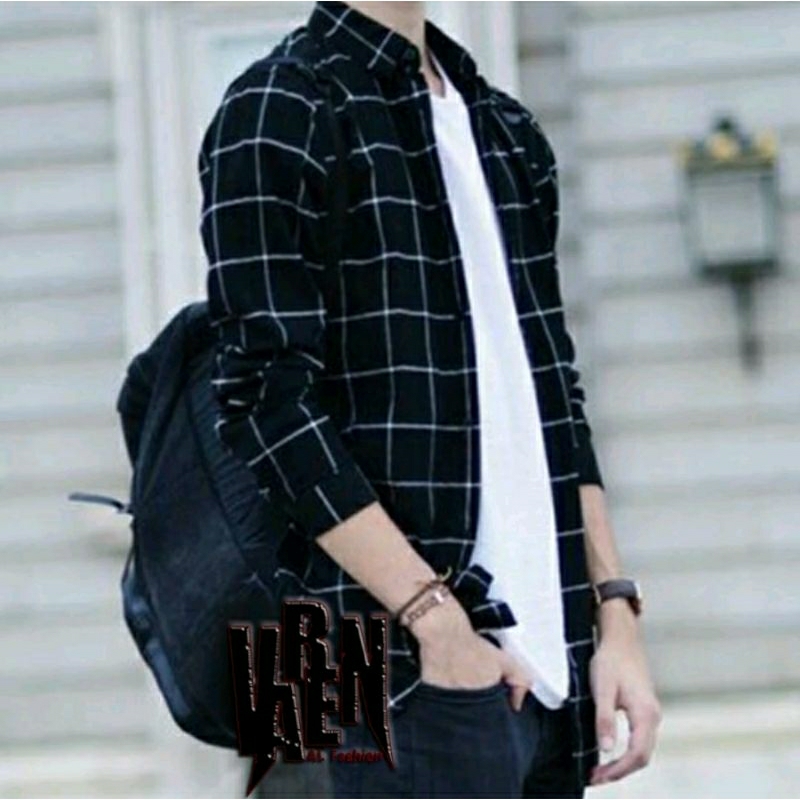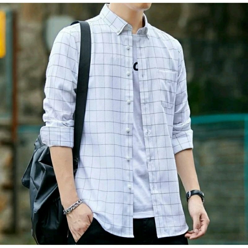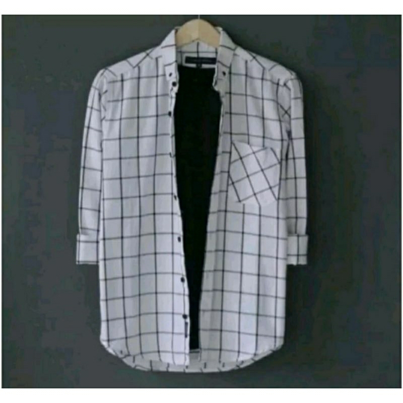 Kemeja Pria Kotak-Kotak Katun Poli S-XXXL