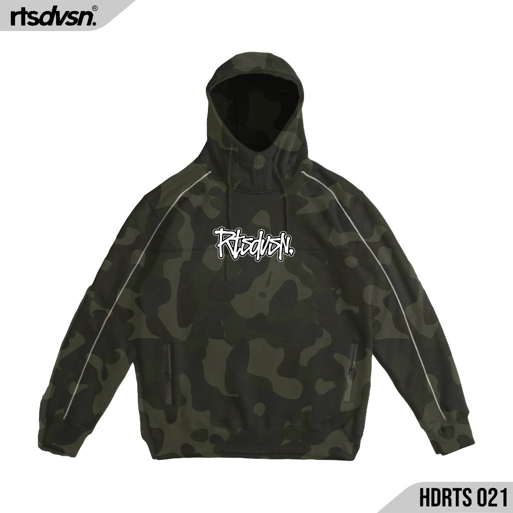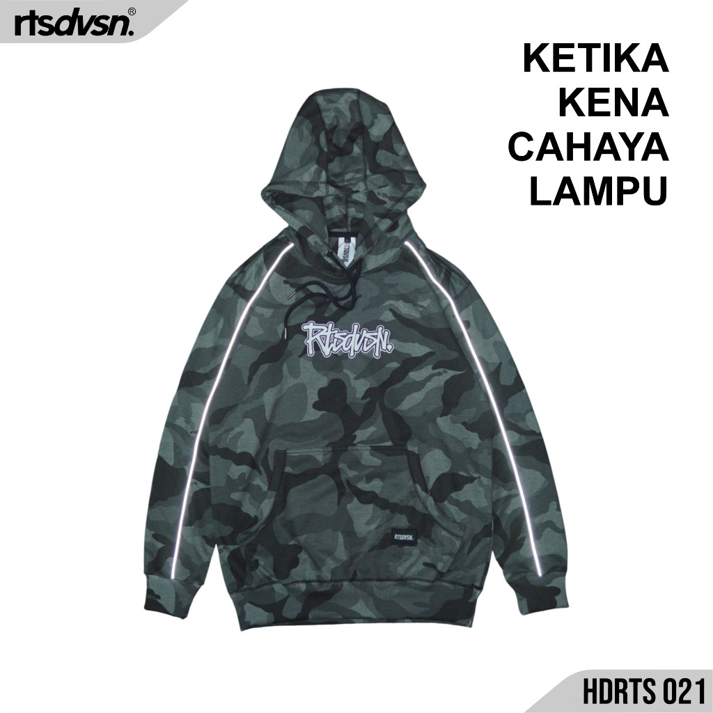 RTSDVSN Hoodie Camo Plastisol | List Lengan Reflektif | Warna Army | Hoodie Pria Dan Wanita | Kode Hdrts 021