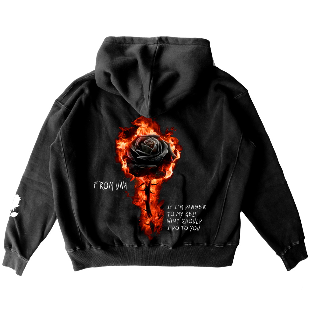 FROM UNA Hoodie Boxy 330 Gsm Reflektif Nyala - Black Rose Oversized Hoodie Black