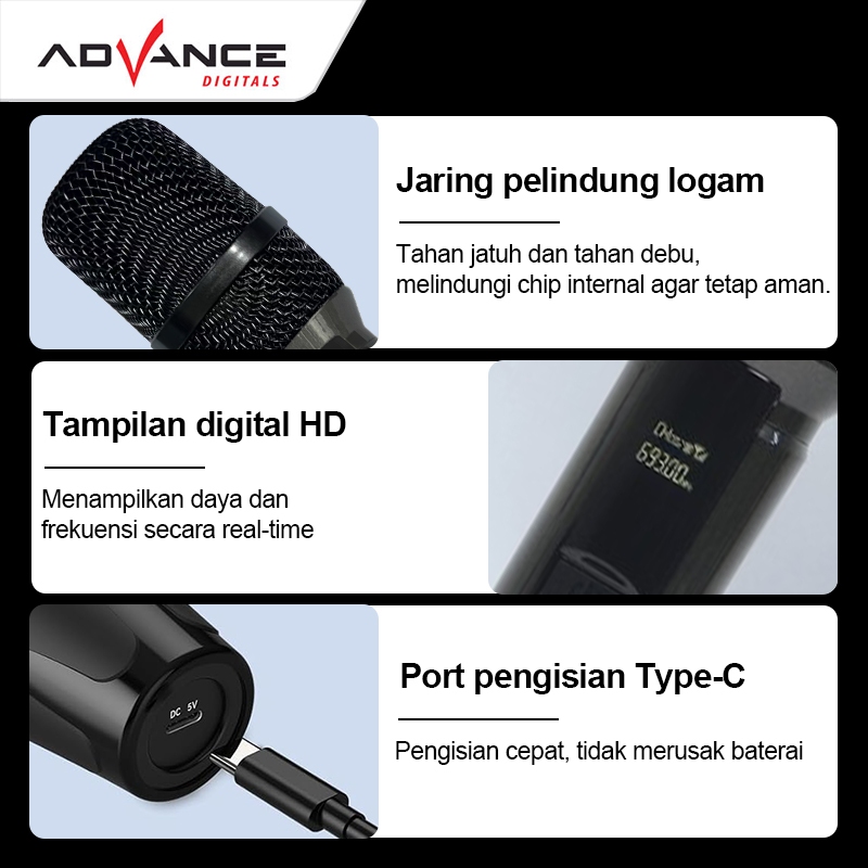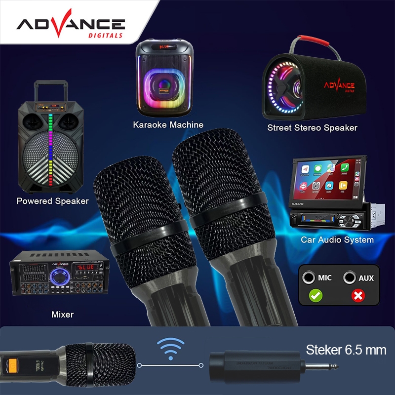 Advance NEW MIC-210 Professional Double Microphone Wireless Recharger Jack 6,5mm Jangkauan 50m