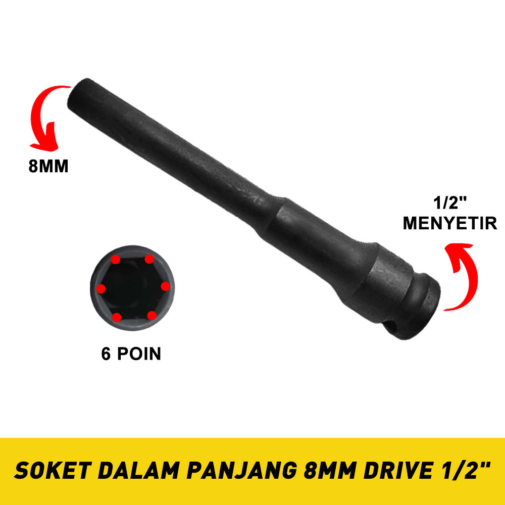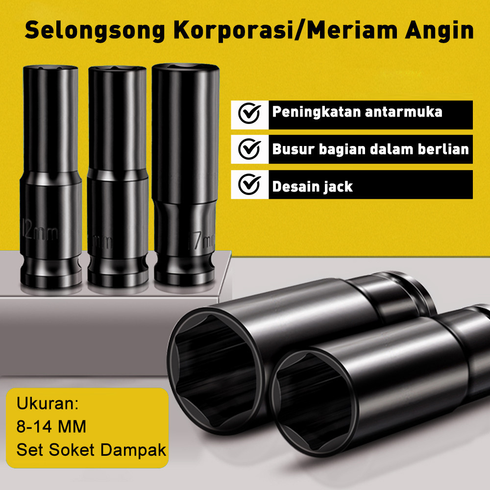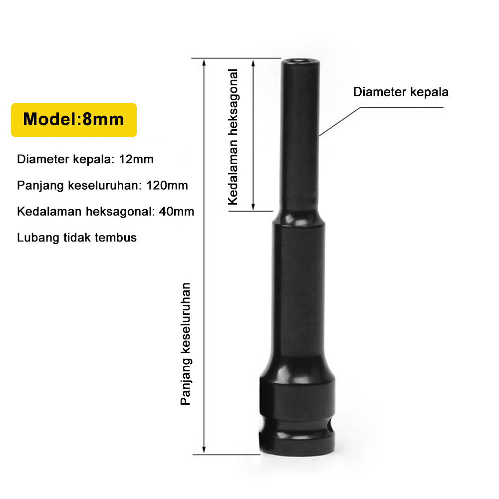 Nexor 4PCS Mata Kunci Shock Extra Panjang 120mm Impact 1/2" Pas Sok Socket 8mm/10mm/12mm/14 mm kit