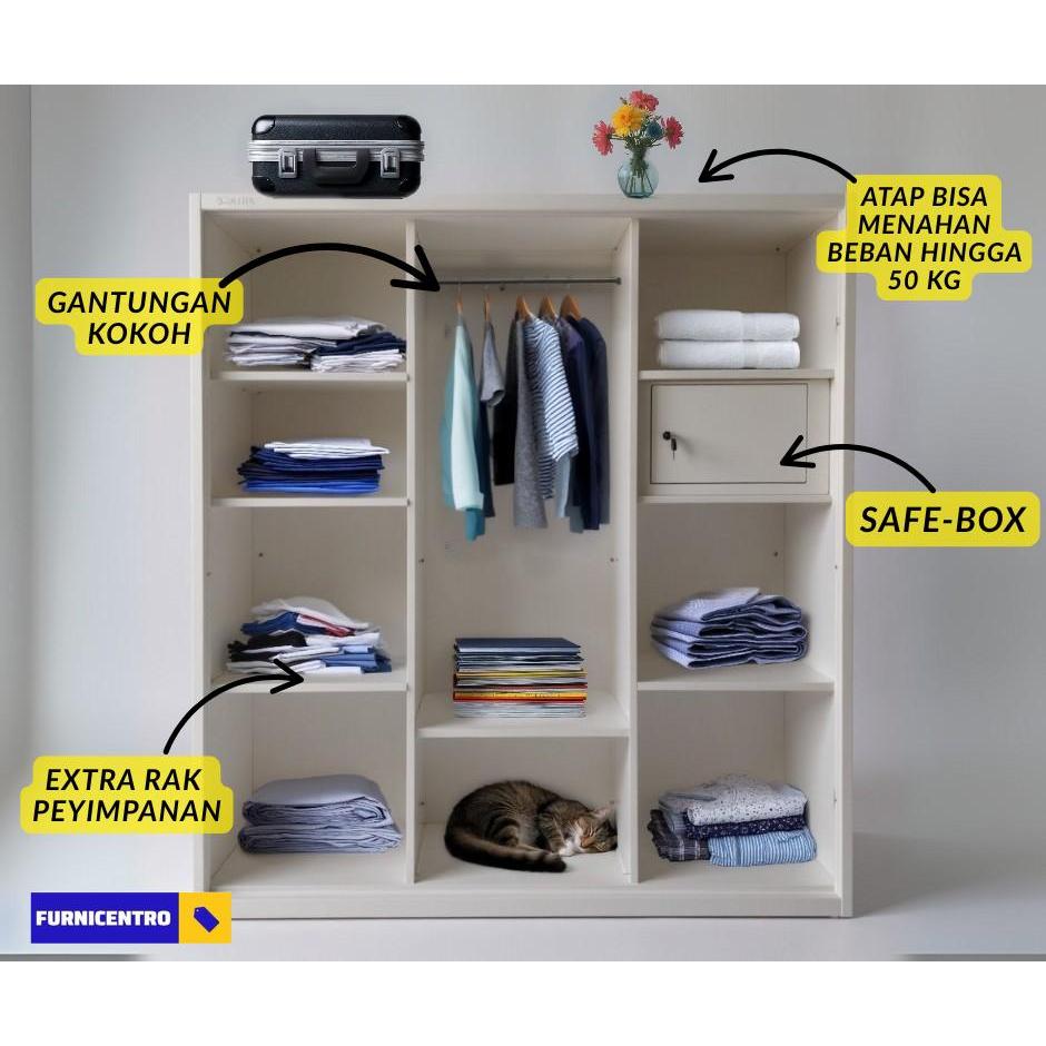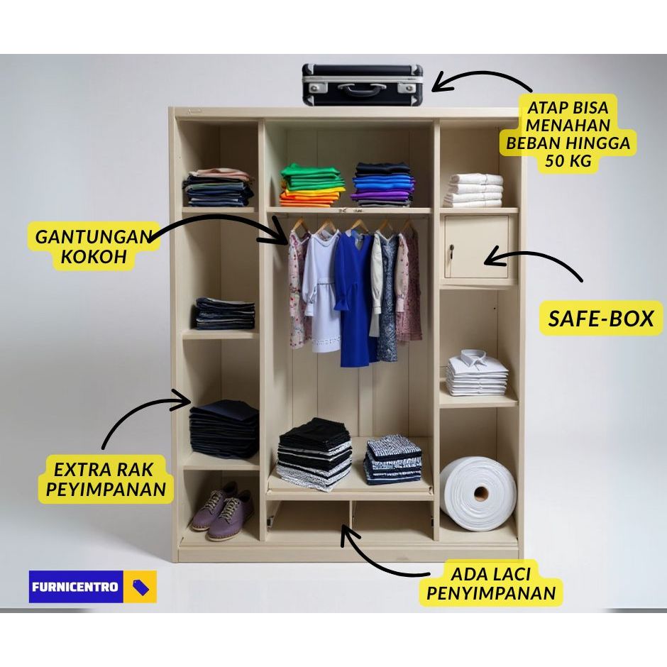 Lemari Pakaian Besi Dewasa Sliding Door Pintu Geser Dengan Kaca Cermin Uk. 185 x 160 x 50