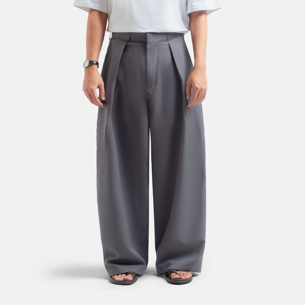 Kasual Celana Neu Pleated Grey Wide Pant Pria