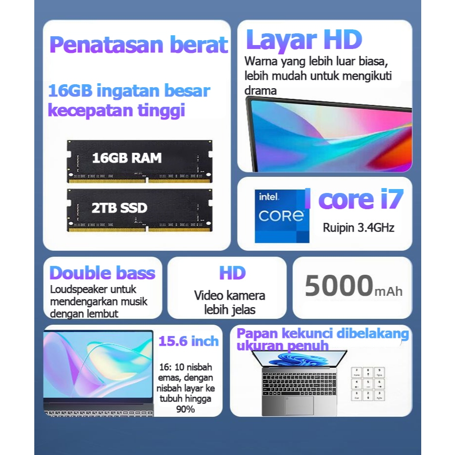 2025 Notebook New Original Intel Core i7 8565U Notebook 16G DDR4 RAM 1TB SSD Office Gaming HD 15.6-inch Office Laptop