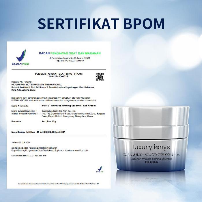 LUXURY IANYS EYE CREAM 30G ANTI-KERUT MENCERAHKAN LINGKARAN HITAM GARIS HALUS MELEMBABKAN MENGENCANGKAN MENGURANGI BENGKAK KANTUNG MATA PENCERAH WAJAH FACIAL