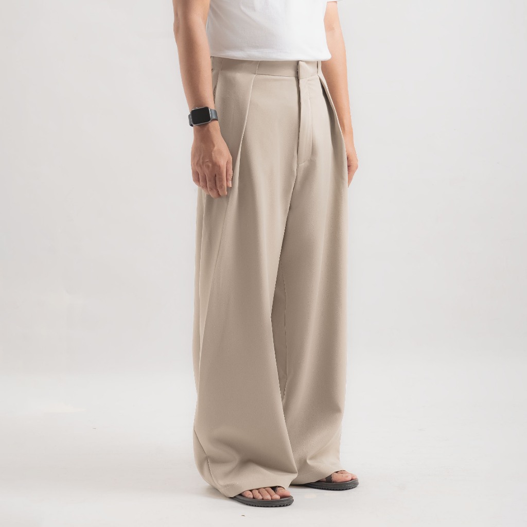 Kasual Celana Neu Pleated Cream Wide Pant Pria