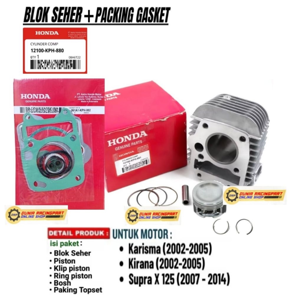 Blok Seher Standar Kharisma Supra X 125 Kirana Blok Seher Cylinder+Topset KPH
