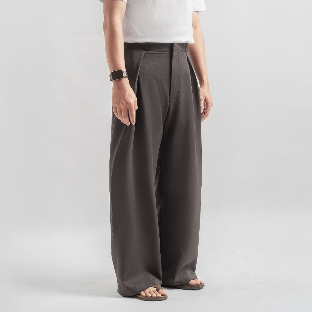 Kasual Celana Neu Pleated Black Brown Wide Pant Pria