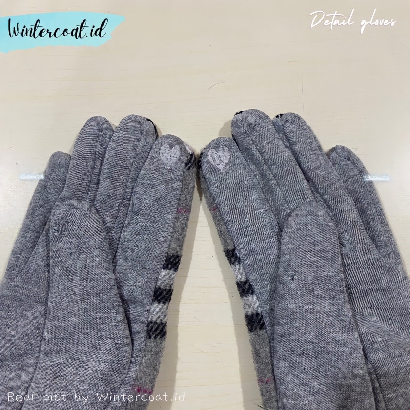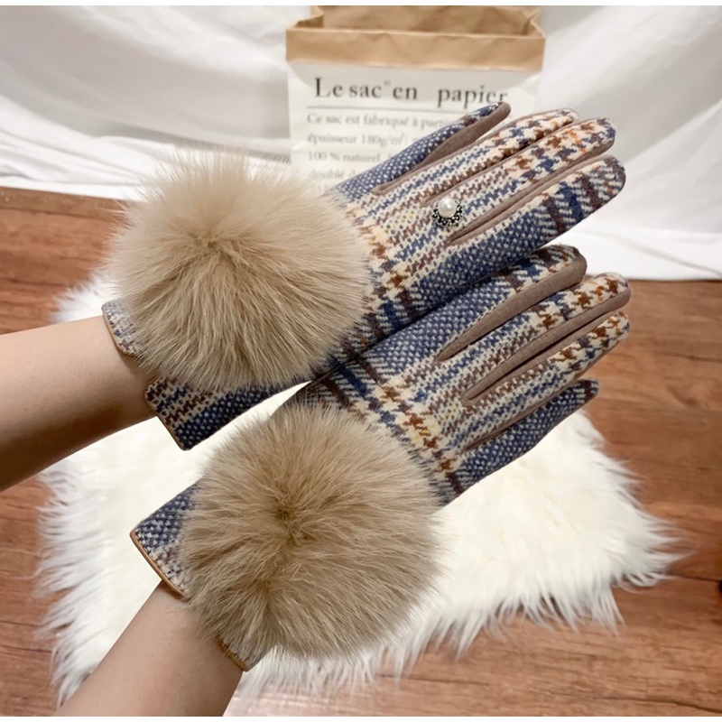 Sarung Tangan Winter Wanita Import Fashion Gloves Hangat Pompom Berry Houndstooth