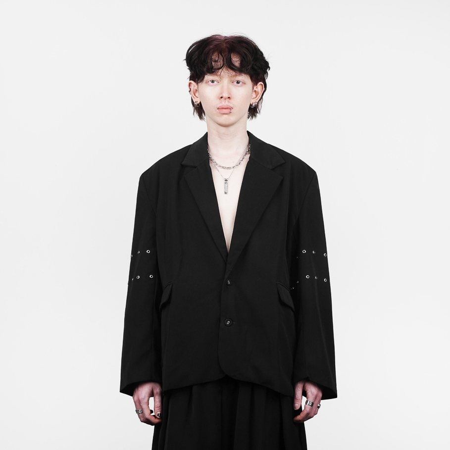 HIERARCHY STUDIOS ENE - Black Metal Logo Oversized Blazer