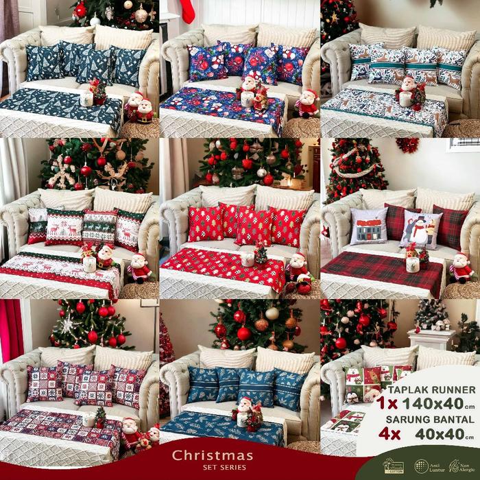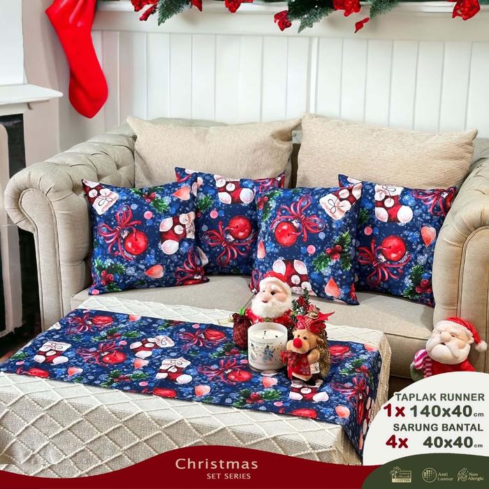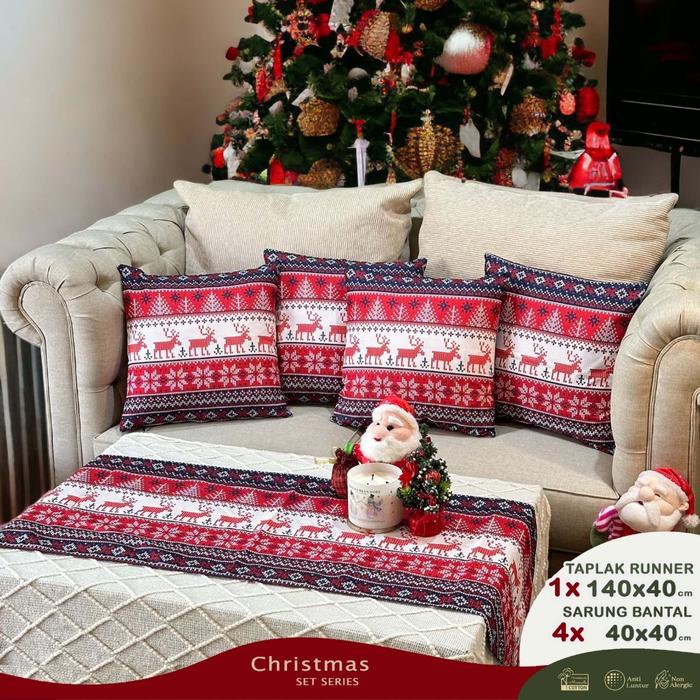 [SET 4+1] SARUNG BANTAL 40X40 CM + TABLE RUNNER 140X40 CM MOTIF CHRISTMAS NATAL HOLIDAY SEASON DEKORASI NATAL - PUSAT KADO MURAH - SET A3 [4S+1T]