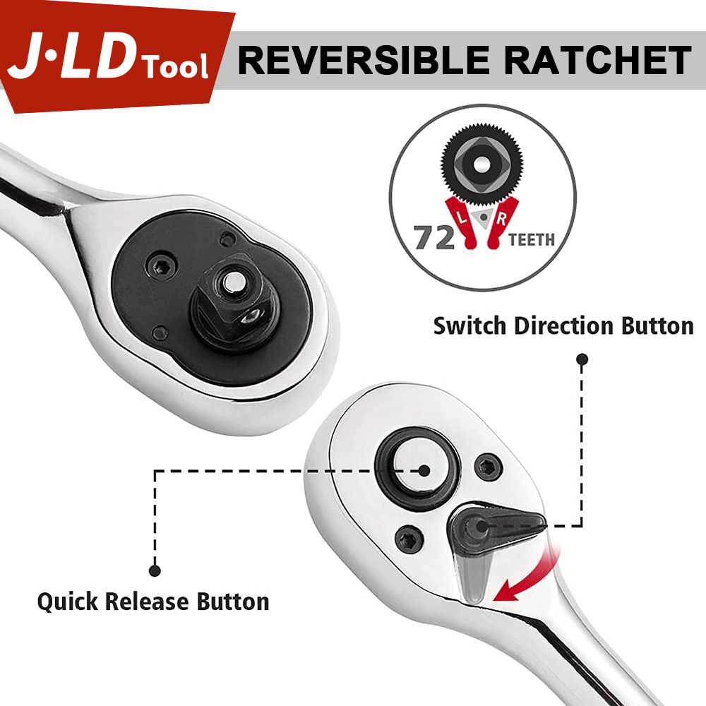 JLD kunci shock set 12Pcs 4-24mm 1/2''-1/4'' kunci Socket Motor Lengkap Socket tool CR-V Kunci shock Wrench set lengkap