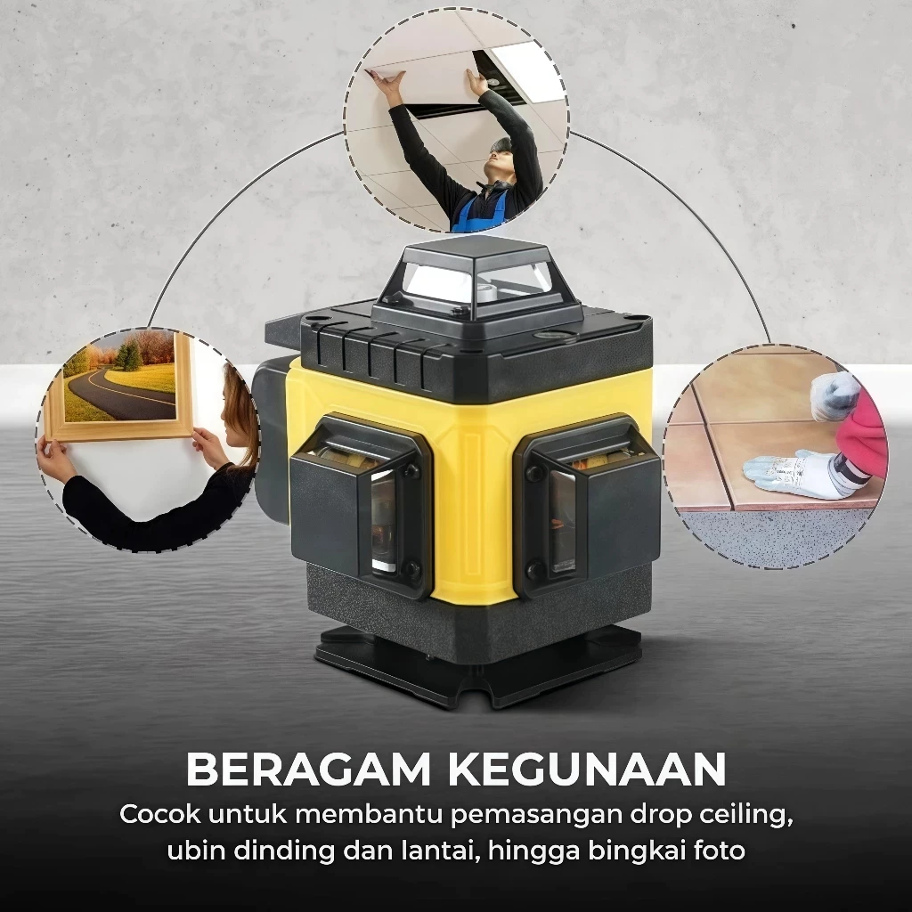 D•WE Laser Level 4D 16Lines 360° Rotary Waterproof Laser Level Hijau Otomatis Garis Hijau Laser Baterai Li-ion