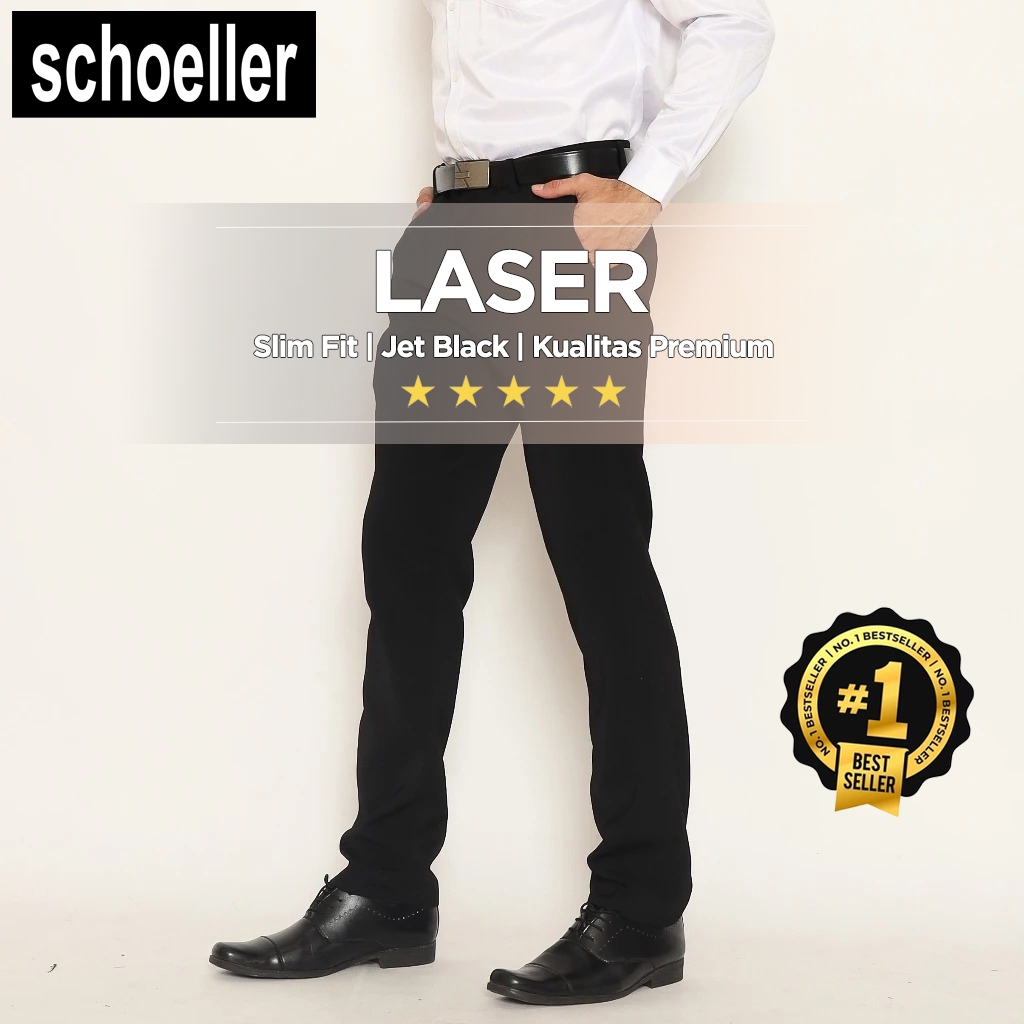 Schoeller Celana Panjang Pria Formal – LASER Jet Black Kualitas Premium