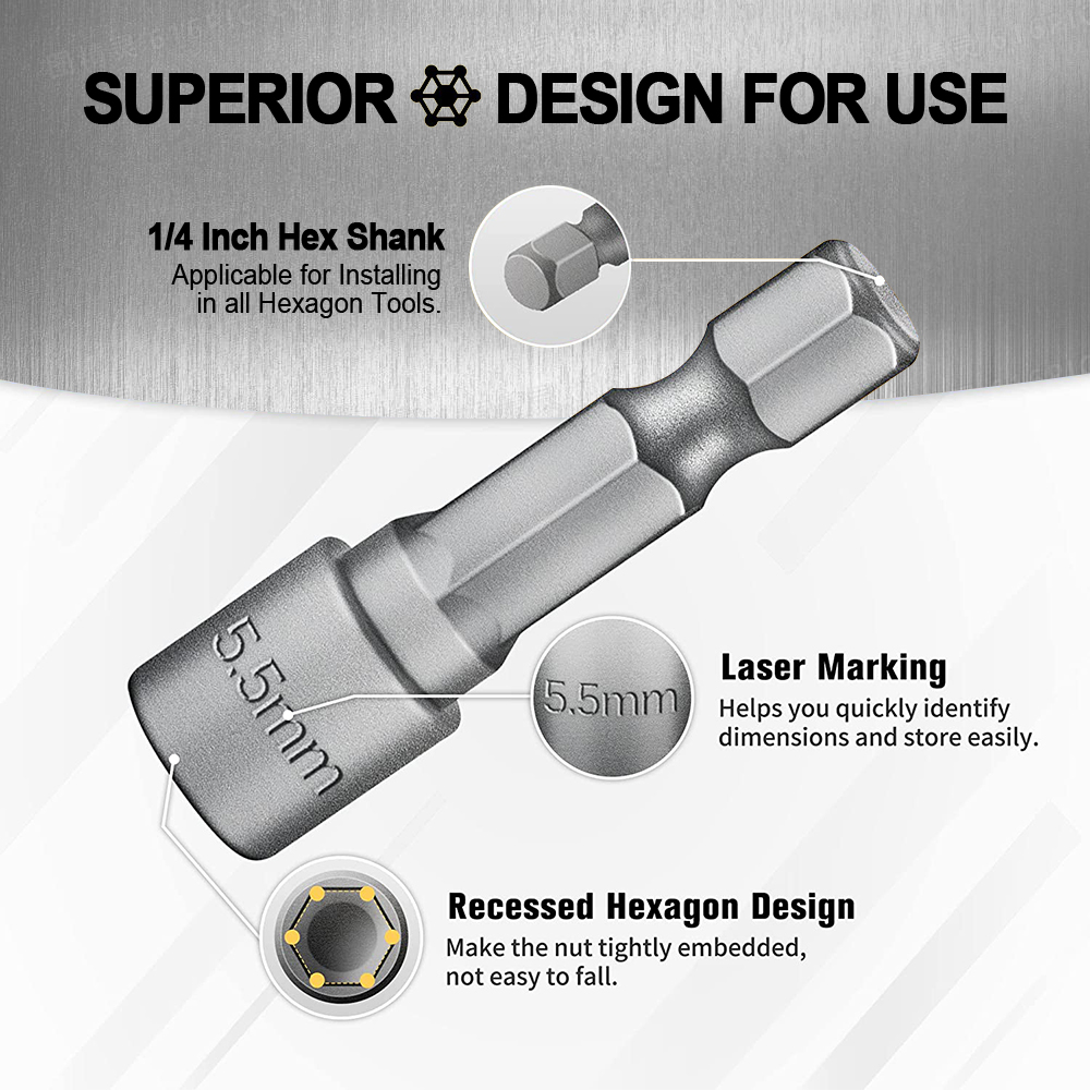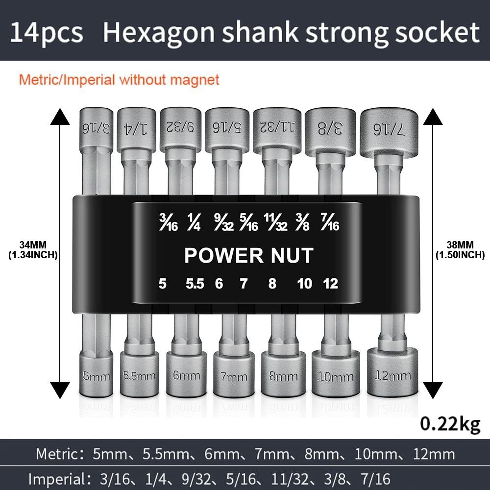 JLD 14pcs Mata Shock Hex Power Nut 5-12mm 3/16inch - 7/16inch Kunci socket set lengkap Untuk Impact Drill Impact Kunci m