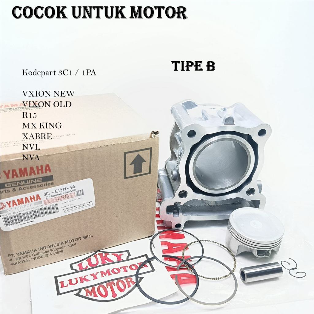 BLOK SEHER KOMPLIT PISTON & TOP SET YAMAHA VIXION NEW , VIXION OLD , R 15 , XABRE KODE 1PA / 3C1