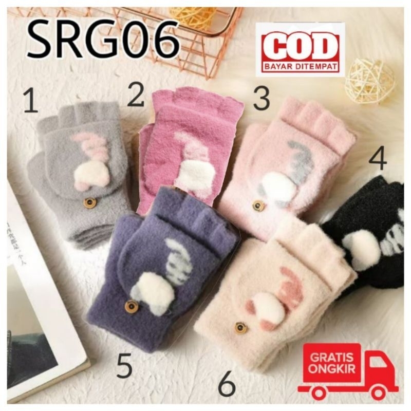 Sarung Tangan Wanita Dewasa Plus Cover Penutup Motif Cat Srg06