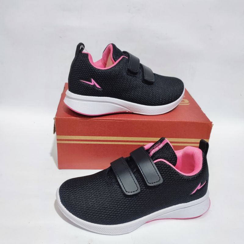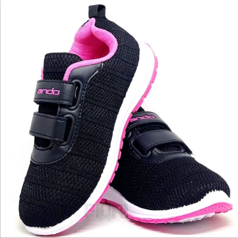 ANDO Sepatu Sekolah Anak Perempuan Cewek Kecil Hitam Pink Rebecca Original Perekat Size 29 sd 36