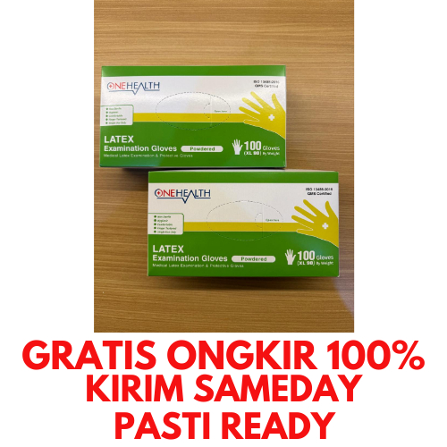 ONEHEALTH SARUNG TANGAN MEDIS LATEX POWDERED EXAMINATION GLOVES HANDSCOON ISI 10 ISI 20 MEDIS GRATIS ONGKIR