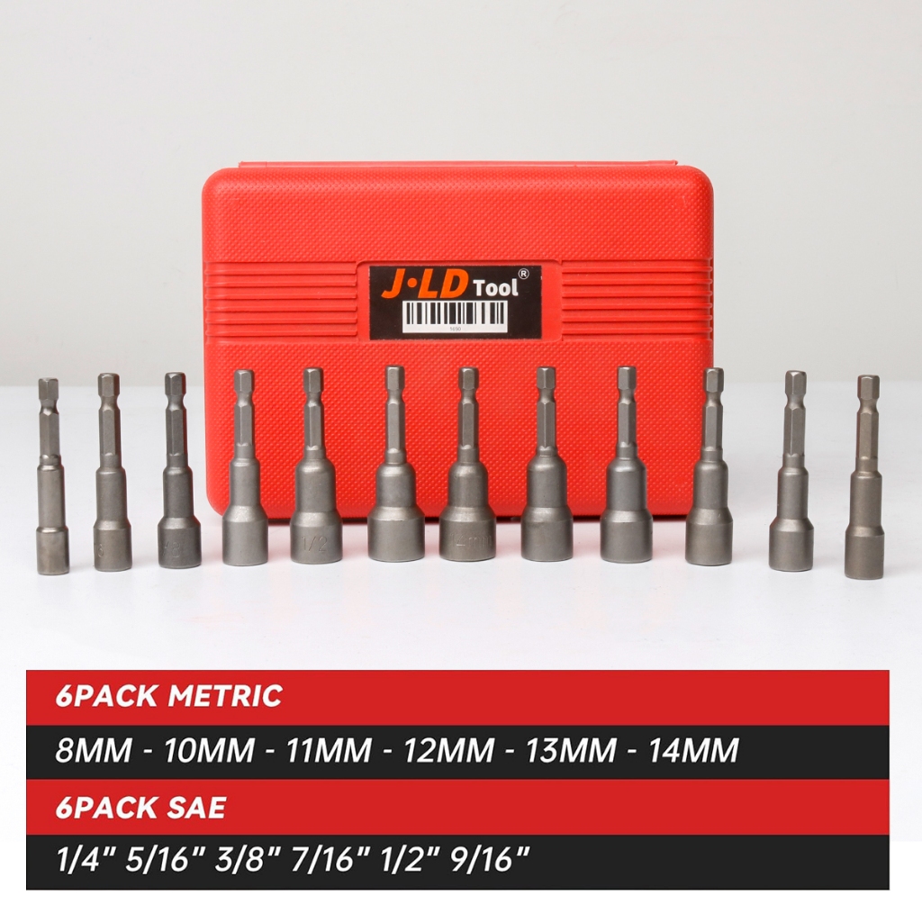 JLD 12pcs Magnet Mata Shock Hex Power Nut Kunci socket set lengkap Untuk Impact Drill Impact Kunci mata Impact socket