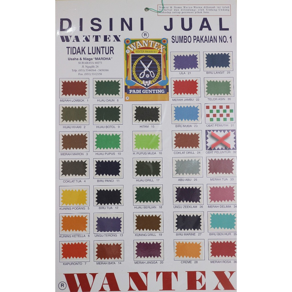 Wantex Wenter Pewarna Pakaian/Kain Padi Gunting Original Sumbo No.1 Terpercaya Sejak 1950 Tidak Luntur