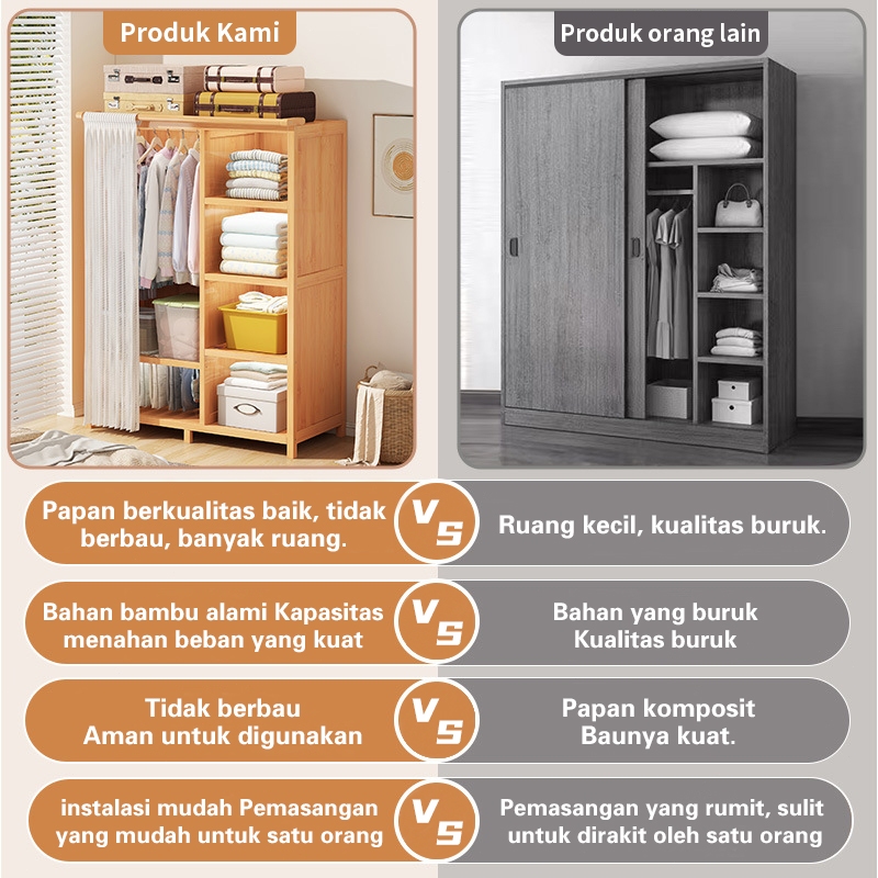 Lemari Pakaian Rotan Lemari Pakaian Tertutup Lemari Baju Minimalis Rak Baju Serbaguna Anti Rayap Gratis Ongkir