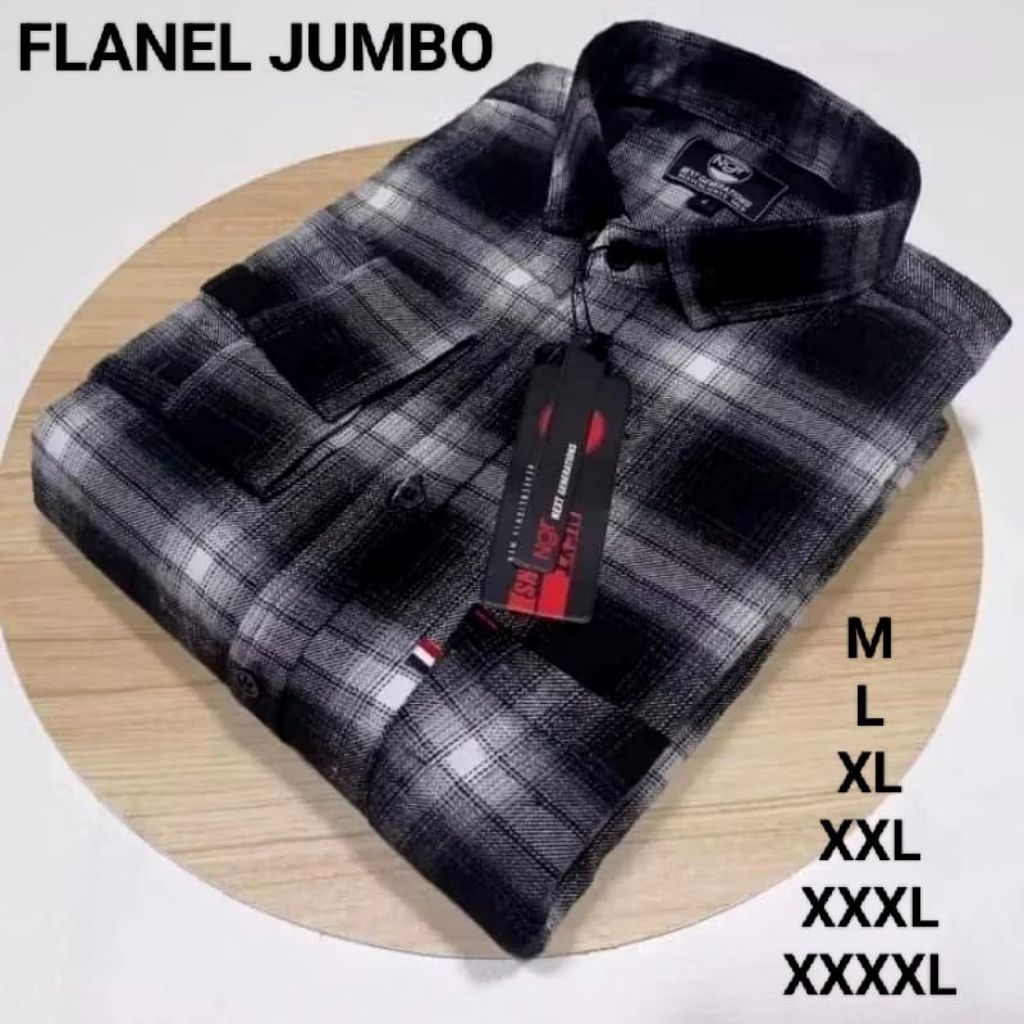 oversize jumbo XXL-XXXL-XXXXL kemeja flanel catur merah lengan panjang