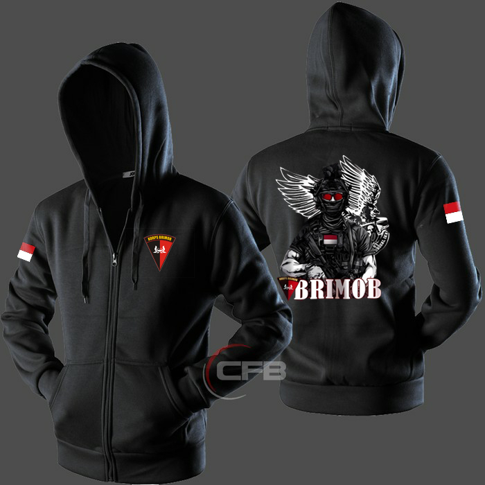JAKET HOODIE ZIPPER BRIMOB WARNA HITAM TERBARU