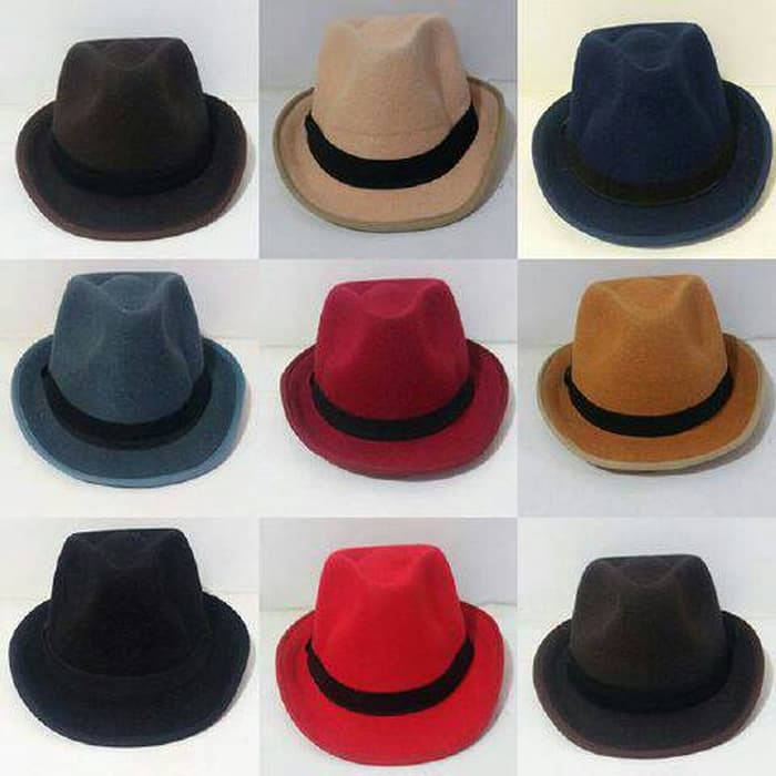 Topi Fedora Daun Pendek | Pria & Wanita | Fedora Hat Quino | Bludru Laken | Elegan Istimewa