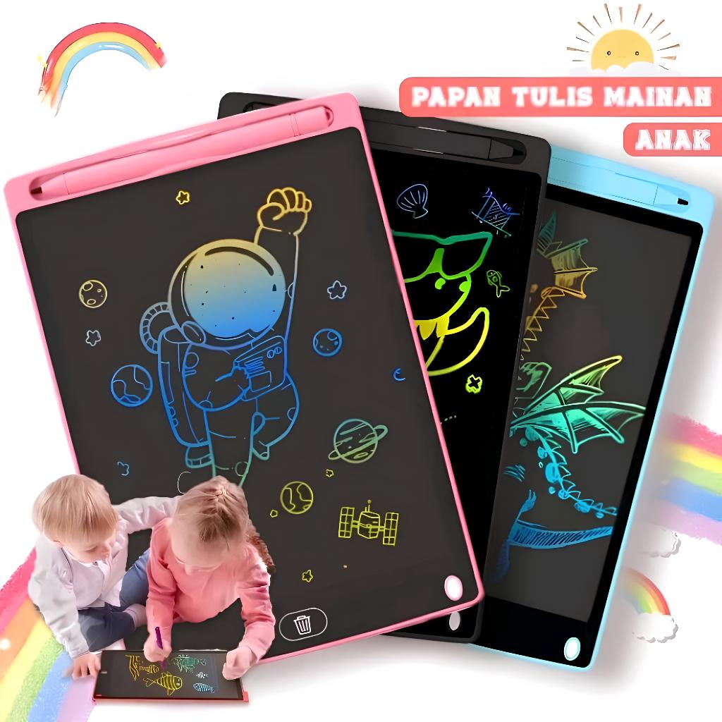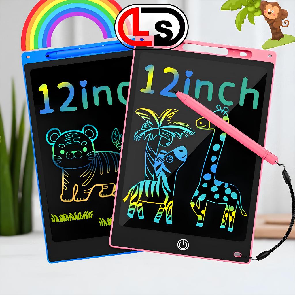 LS Colorful 12 Inch LCD Writing Tablet Drawing Pen Warna Warni Papan Tulis Belajar Anak Bisa Dihapus Mainan Edukatif Anak Papan Tulis Coret