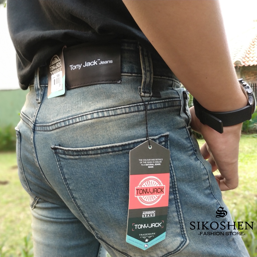Celana Jeans Pria Original TONY JACK / Soft Jeans Panjang Biru Tua Wash