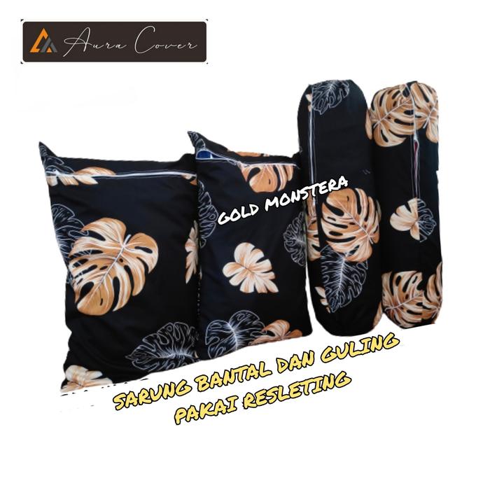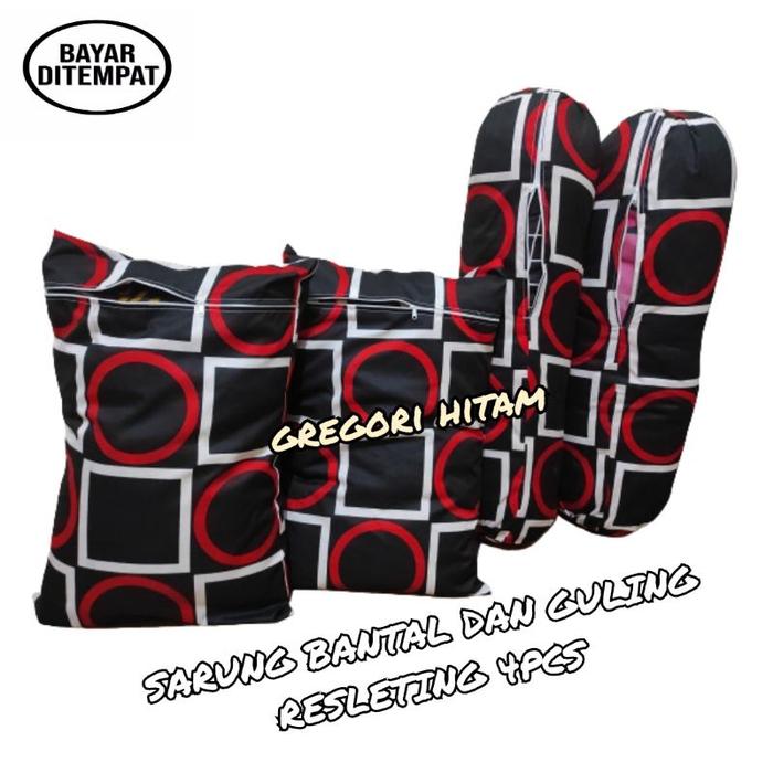 COVER/SARUNG BANTAL DAN GULING RESLETING SIZE STANDARD MOTIP BUNGA DAN HITAM KAIN KATUN POLYMICRO SARUNG BEBAS DICUCI BROWN - KOTAK HITAM, 2 SARBAN + 2 SARGUL