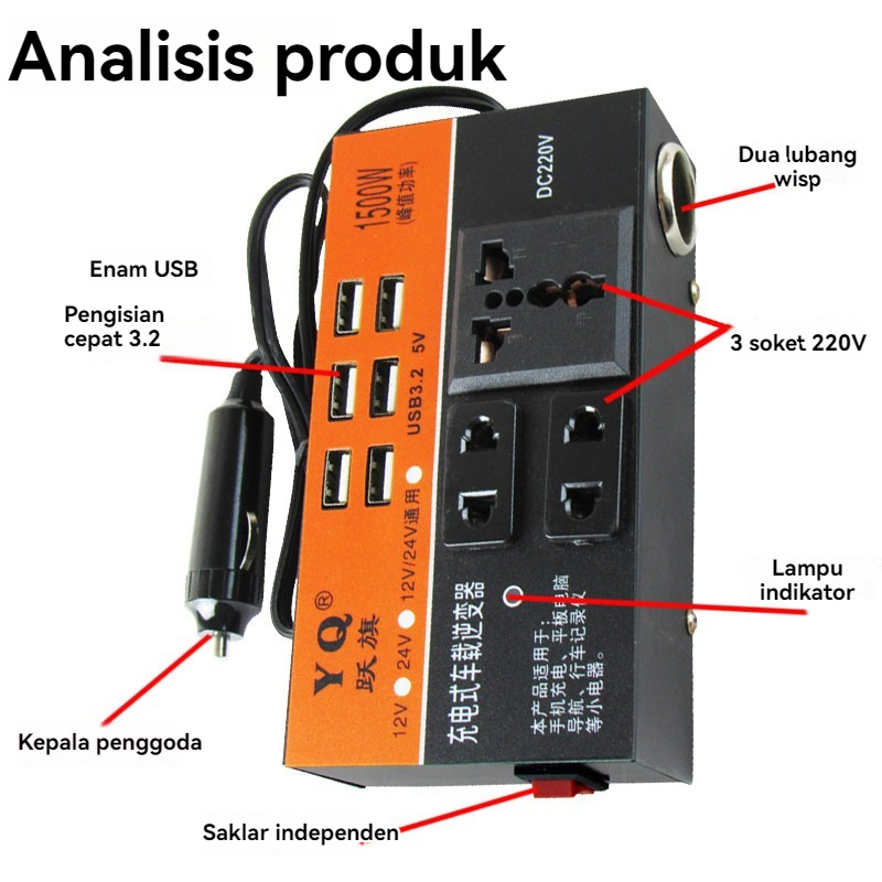 1500W DC Portable USB Car Power Inverter Adapter With 6 USB Ports 12V/24V To AC 220V Charger Fast Charging Car Universal