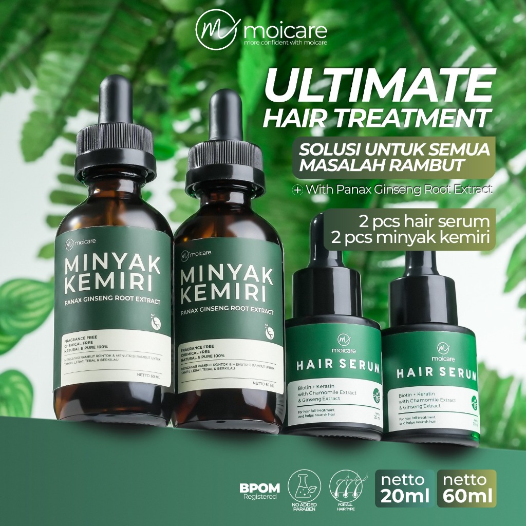 Moicare Special Bundling 4Pcs - Hair Serum 2Pcs & Minyak Kemiri 2Pcs Penumbuh Pelebat Rambut Anti Rontok Paket Hair Grow