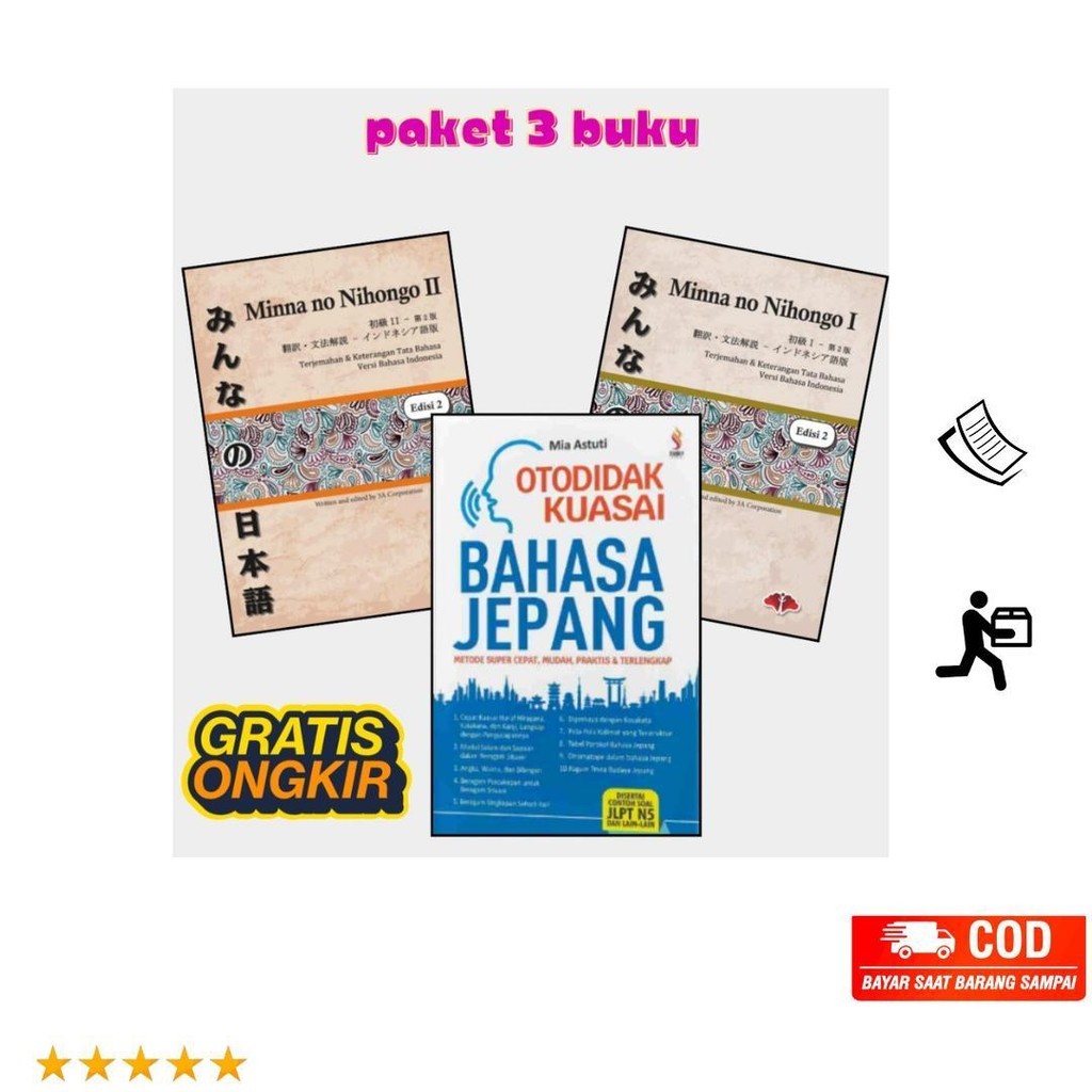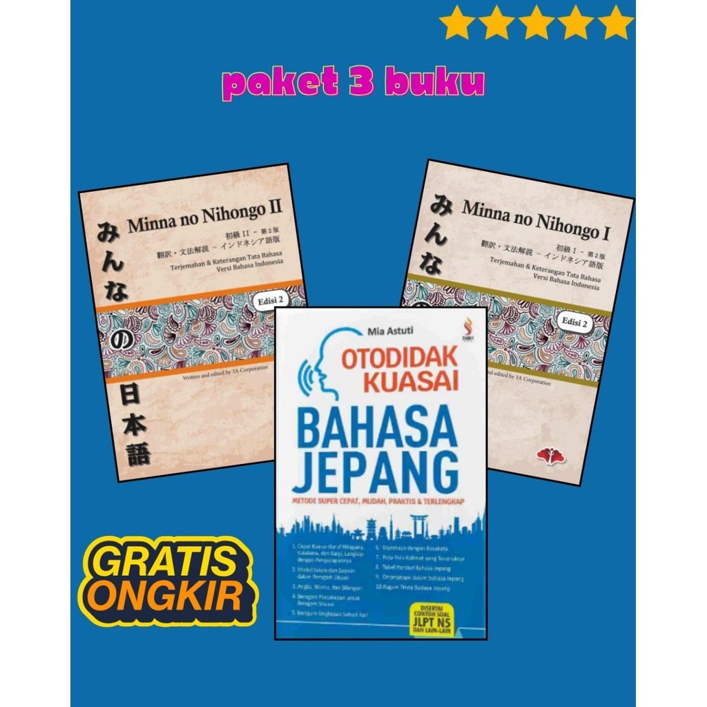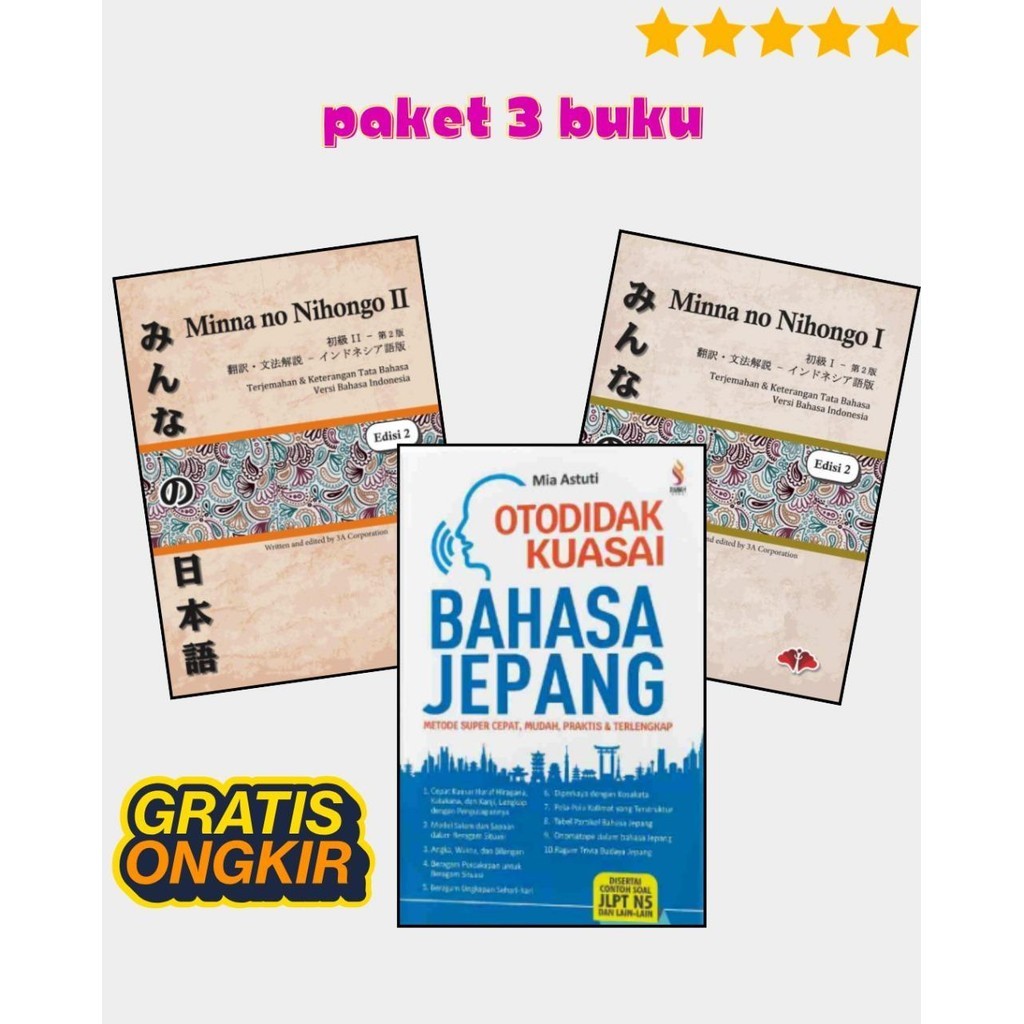 Paket 3 Buku Bahasa Jepang, Otodidak Kuasai Bahasa Jepang - minna no nihongo 1 dan 2 / M A