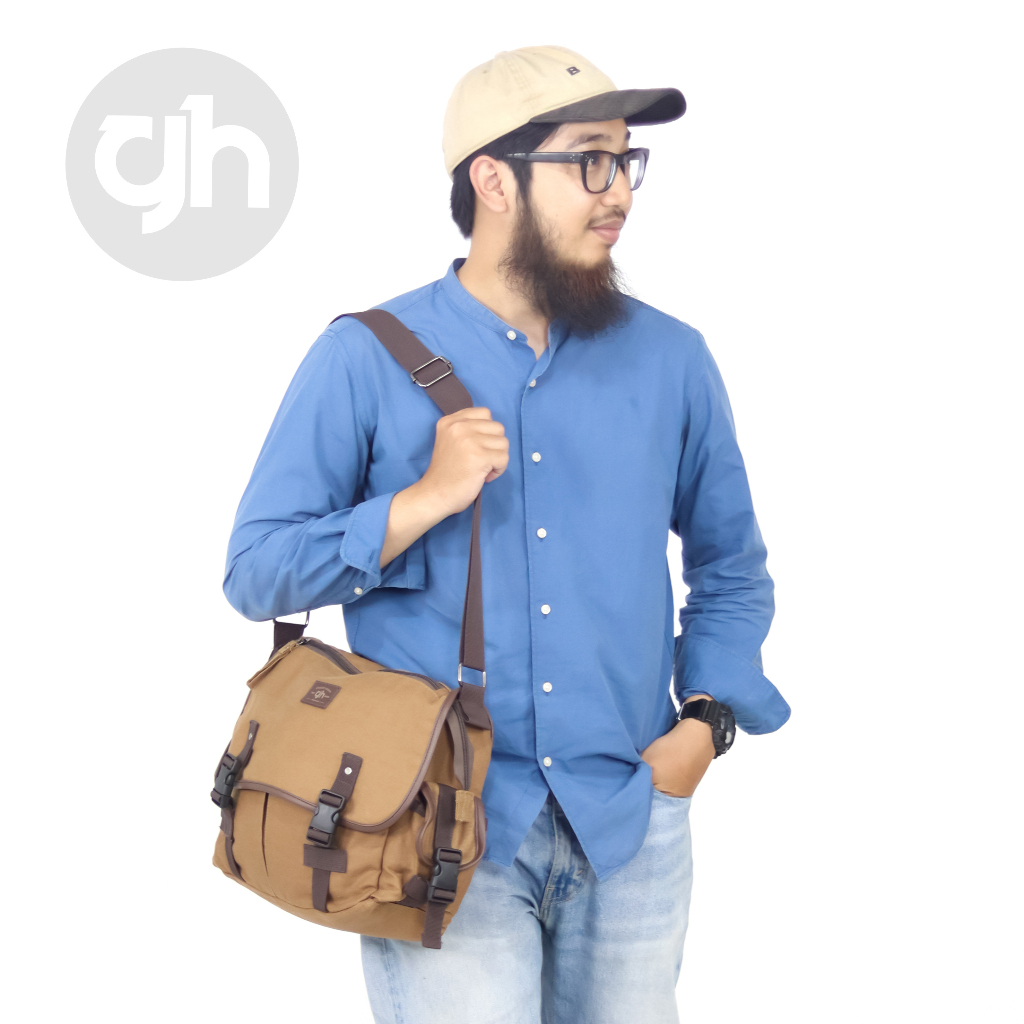 GH-Bag Tas Slingbag Pria/Tas Selempang/Tas Kerja Pria/Tas Cowo Besar Canvas Model Terbaru Kekinian