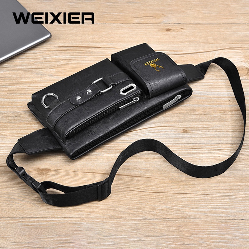 WEIXIER 8117 Tas Selempang Pria Kulit Waistbag Anti Air WK-SBY