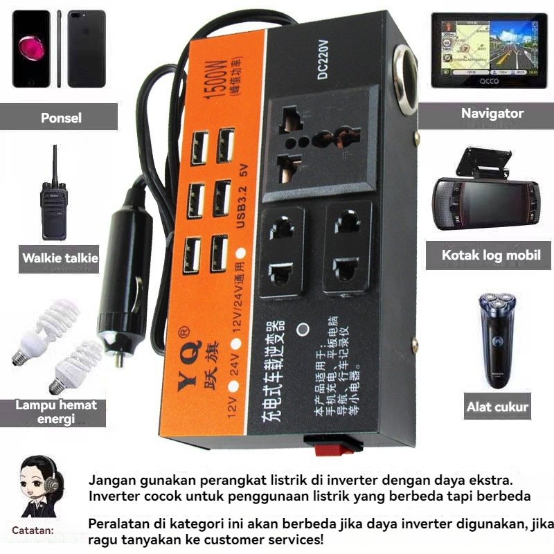 1500W DC Portable USB Car Power Inverter Adapter With 6 USB Ports 12V/24V To AC 220V Charger Fast Charging Car Universal