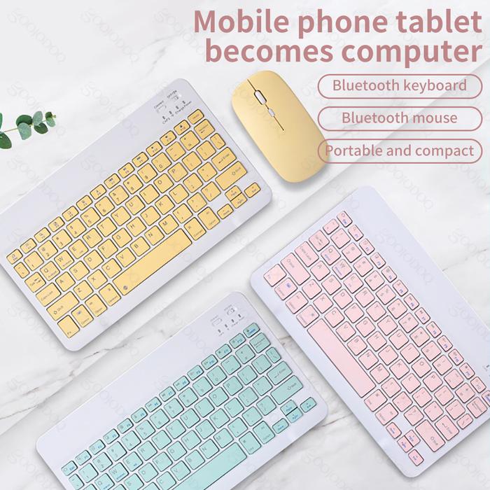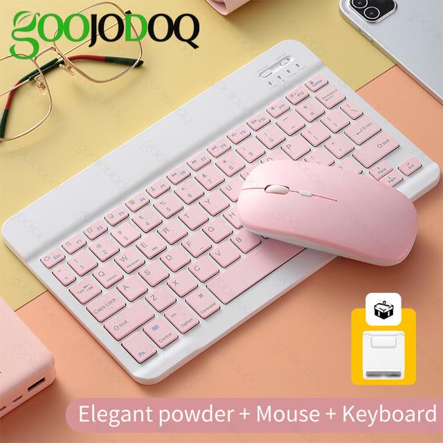 GOOJODOQ 9.7/10 INCH WIRELESS BLUETOOTH IPAD KEYBOARD DAN MOUSE SET - MERAH MUDA
