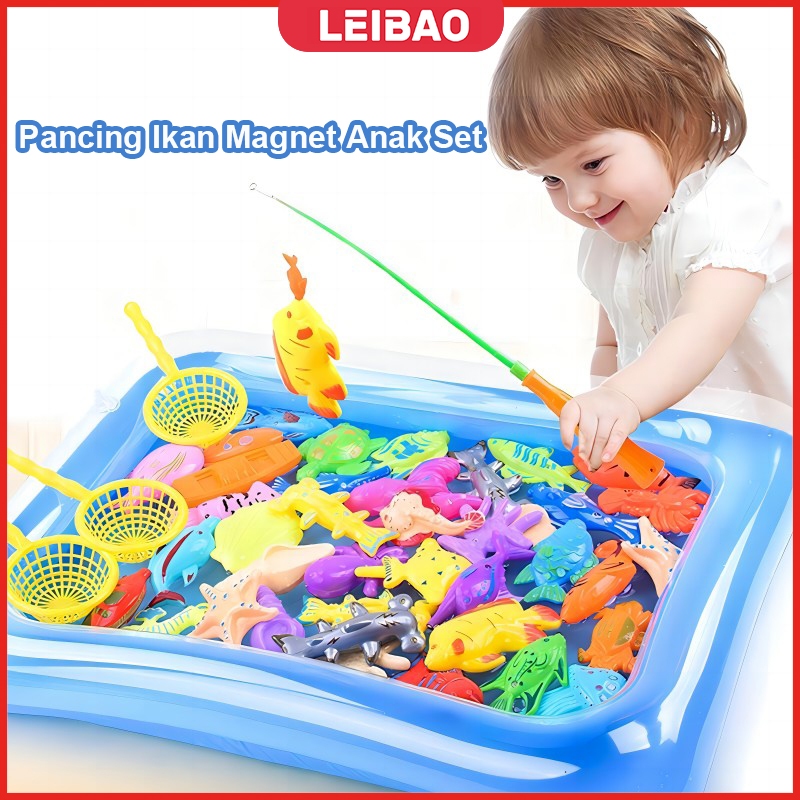 Mancing Ikan Mainan Pancingan Ikan Set Lengkap 16 / 32 / 40 / 50 / 60 PCS Dan Kolam Pancing Ikan Magnet Anak