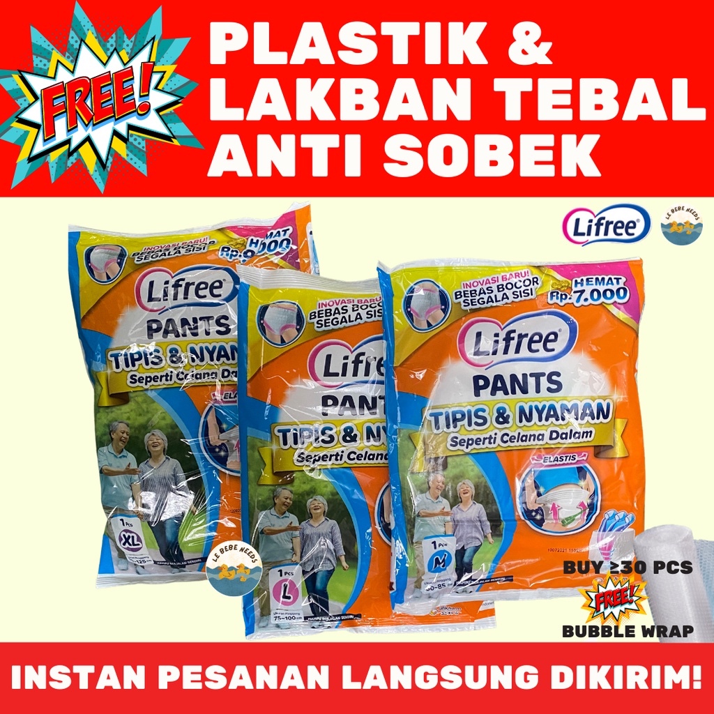 Popok Celana Dewasa Isi 20 pcs - Lifree Pants 20 pcs Lifree Sachet Renceng 20pcs Size M L XL XXL
