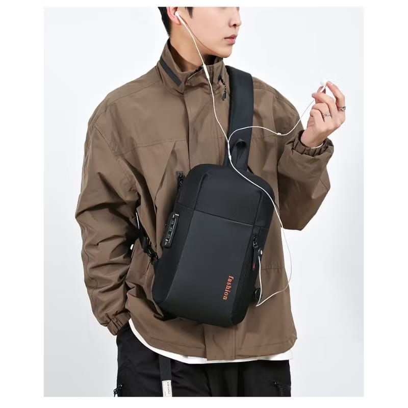 Tas Selempang Pria Premium Multifungsi USB Anti Maling/Men Chest Sling Bag Waterproof/Tas Slempang Laki-Laki