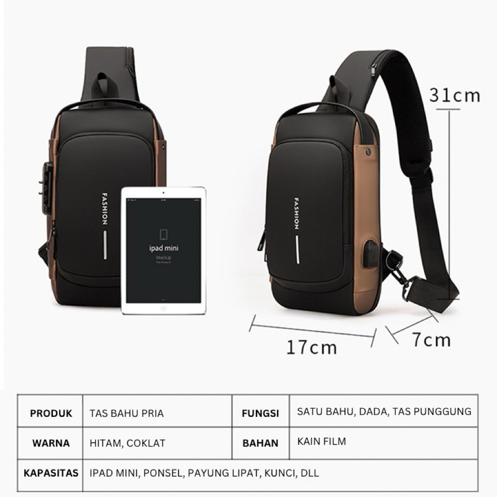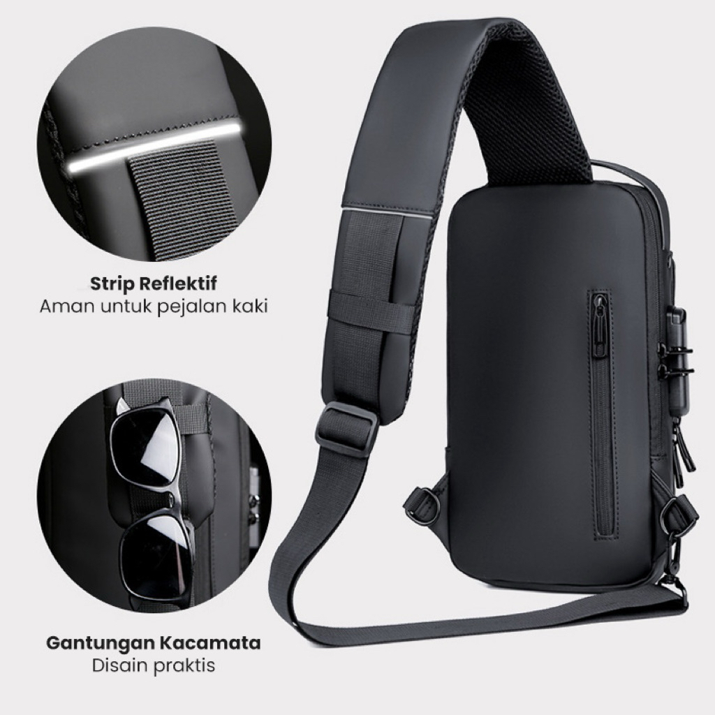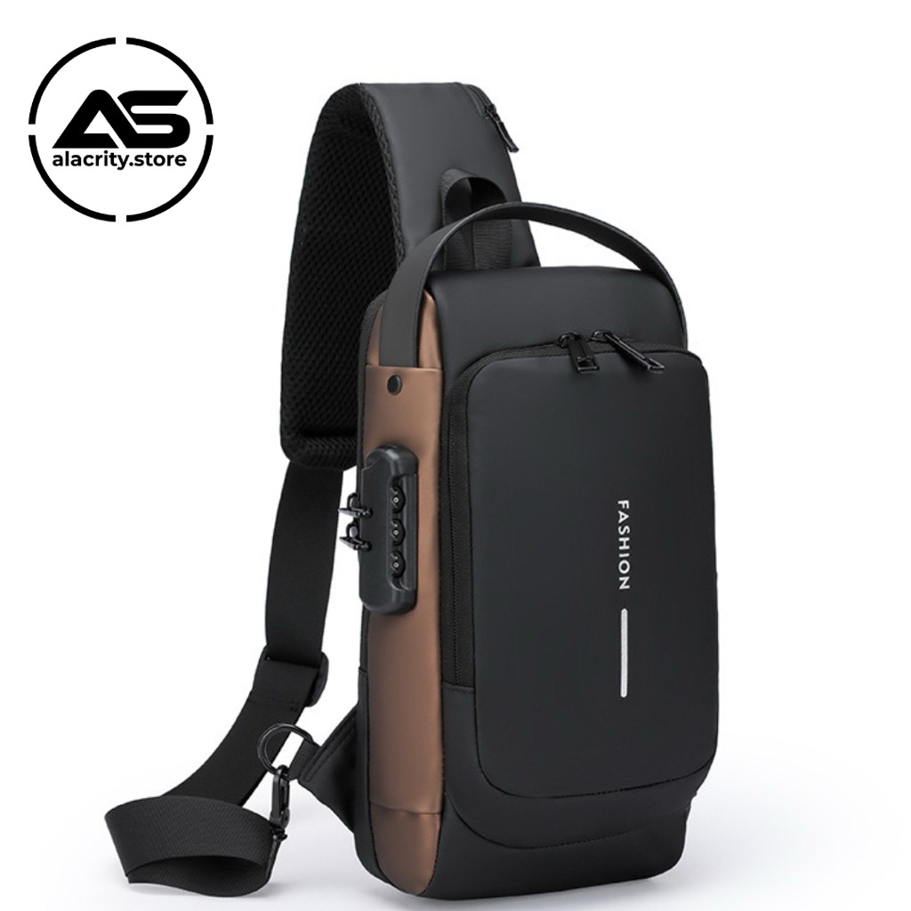 ALACRITY X314 Tas Selempang Pria Anti Maling Multifungsi USB Port Shoulder Bag Anti Air