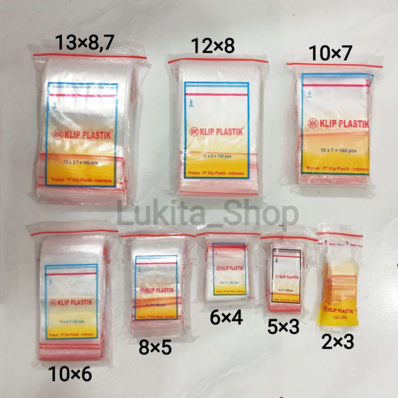 Plastik Klip Bening Ukuran 2x3, 3x5, 4x6, 5x8, 6x10, 7x10, 8x12, 8,7X13 Isi 100 lembar