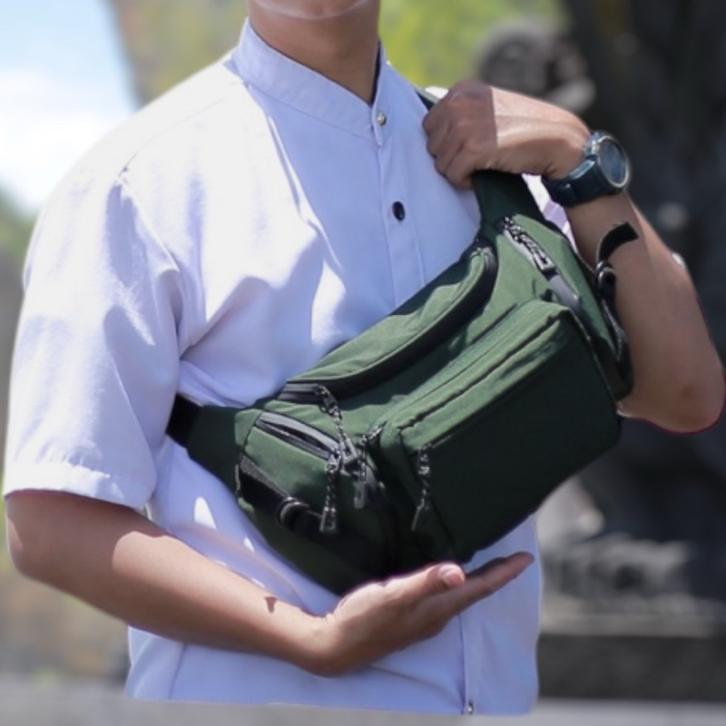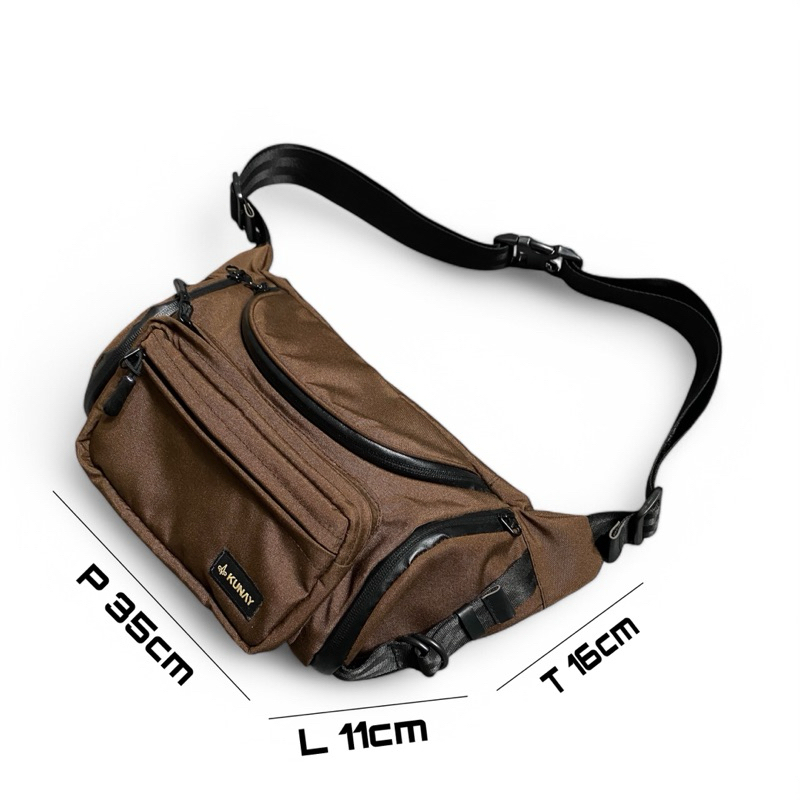 Kunay - Tas Selempang Pria Anti Bara anti Air Waistbag HAYA Jumbo 7 Resleting SERIES Army Hitam Outdoor Pinggang