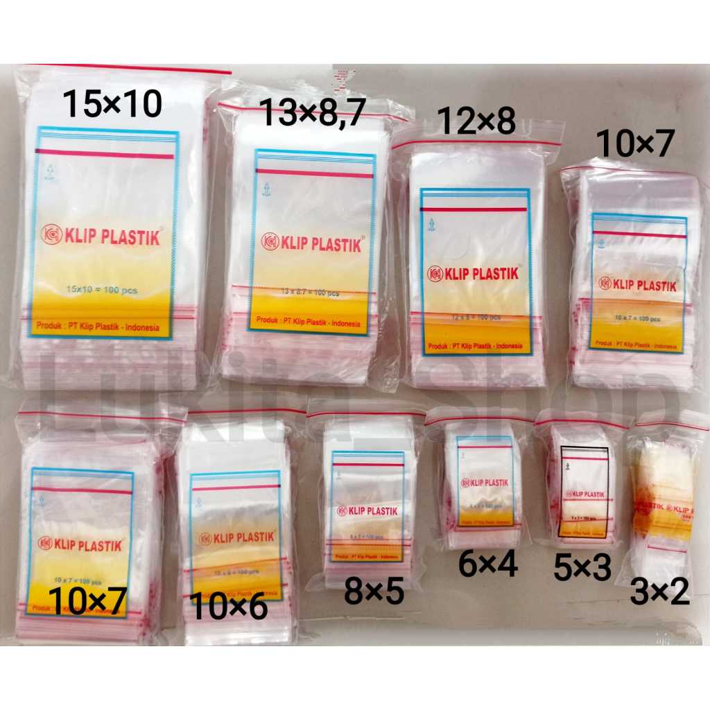 Plastik Klip Bening Ukuran 2x3, 3x5, 4x6, 5x8, 6x10, 7x10, 8x12, 8,7X13 Isi 100 lembar