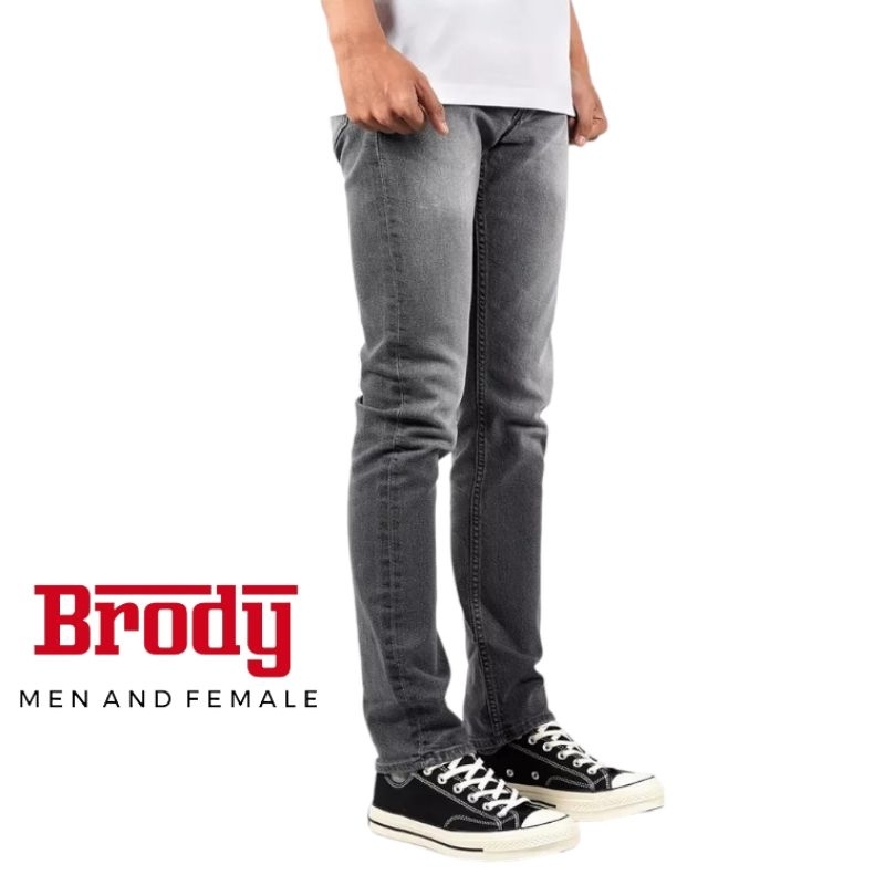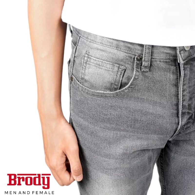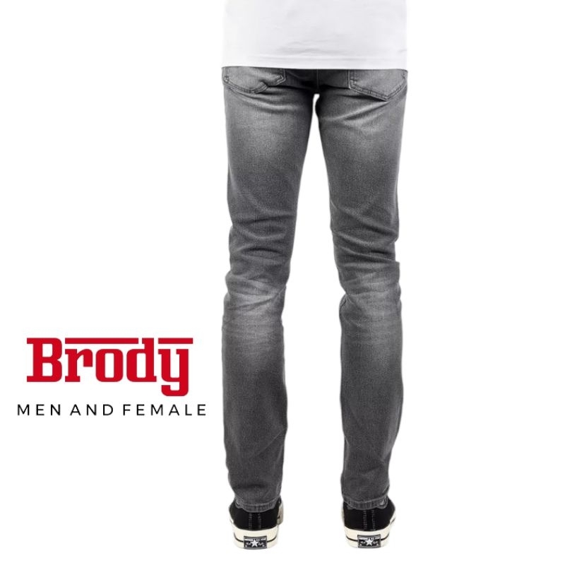 Celana Jeans Pria Bahan Melar Denim Slim Fit Cowok Abu Muda Washing Grey Stone Cerah