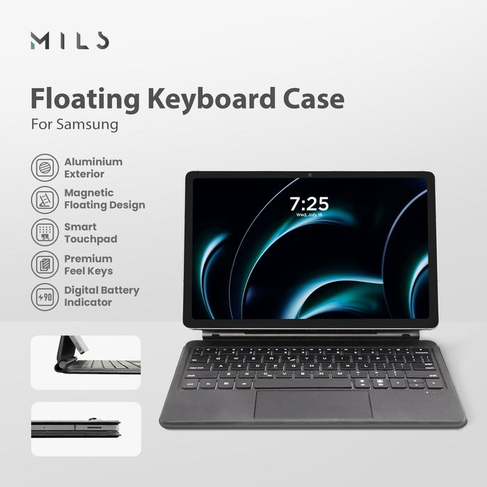 MILS FLOATING MAGIC KEYBOARD CASE FOR SAMSUNG TAB S7 S8 S9 S7FE S7+ S8+ S9+ S9FE S9FE+ S10+ S10FE 11 12.4 INCH PLUS - FKB01S SS - 11 INCH, BLACK