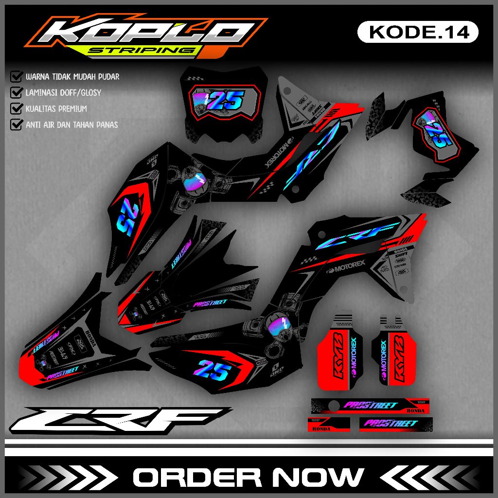 Sticker Decal Full body Supermoto CRF 150 L - Dekal Stiker CRF 150 L Grafis Custom Nama/Nomer KPL.14